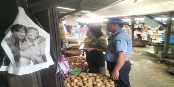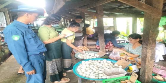(၄.၉.၂၀၂၅) ရက်နေ့၊ နံနက် (၉:၃၀) နာရီအချိန်တွင် စားသုံးသူရေးရာဦးစီးဌာနမှ မြို့နယ်တာဝန်ခံနှင့် ဝန်ထမ်းသည် စည်ပင်သာယာရေးအဖွဲ့ ဈေးအရာရှိများနှင့် အတူ အောင်ဧရာဈေးရှိ ကြက်ဥ/ဘဲဥ ရောင်းချသော ဒေါ်ဝေနှင်းဖြိုး ကြက်ဥ/ဘဲဥအရောင်းဆိုင်သို့ ကြက်ဥ/ဘဲဥဈေးအား ကွင်းဆင်းစုံစမ်းခဲ့ရာ ကြက်ဥ အကြီး(၁) လုံးလျှင်