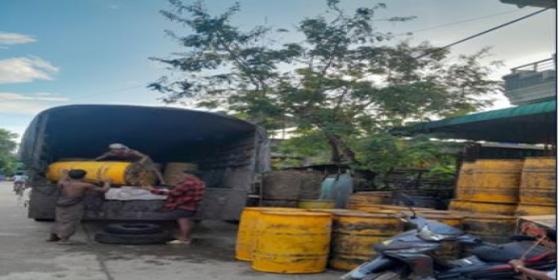 ဧရာဝတီတိုင်းဒေသကြီး၊ စားသုံးသူရေးရာဦးစီးဌာန၊ မြောင်းမြခရိုင် ဝါးခယ်မမြို့နယ်တာဝန်ခံ ဦးအောင်မိုးနှင့် ဝန်ထမ်းများသည် (၇.၉.၂၀၂၅)ရက်နေ့၊ နံနက်(၁၁;၅၅)အချိန်တွင် ဝါးခယ်မမြို့နယ်၊ ကျုံမငေးမြို့ ဆီကိုယ်စားလှယ်များထံသို့ ပို့ပေးသော စားအုန်းဆီများကို ရန်ကုန်မြို့ရှိ တော်ဝင်ဧကရာဇ် ကုမ္မဏီ၏(ယဉ်အမှတ်1L-3908 )မော်ယဉ်ဖြင့် စားအုန်းဆီ စုစုပေါင်း(၃၈)ပ
