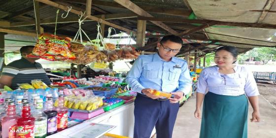 စားသုံးသူရေးရာဦးစီးဌာန၊ မြစ်ကြီးနားခရိုင်ဦးစီးမှူးရုံးမှ စစ်ဆေးရေးမှူး ဦးဇေယျာအောင် သည် ၈.၉.၂၀၂၅ ရက်နေ့၊ ၁၀:၀၀ နာရီအချိန်တွင် မြစ်ကြီးနားမြို့၊ ဧရာရပ်ကွက်၊ အ.ထ.က(၁) ကျောင်းမုန့်ဈေးတန်းရှိ