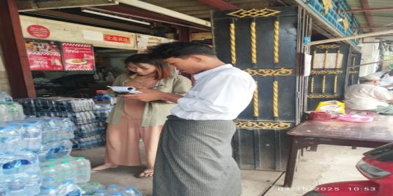 မအူပင်ခရိုင်၊ ပန်းတနော်မြို့နယ် စားသုံးသူရေးရာဦးစီးဌာနမှ ဝန်ထမ်းများသည် ၂-၉-၂၀၂၅ ရက်နေ့ နံနက် ၉ နာရီအချိန်က ပန်းတနော်မြို့နယ်အတွင်း ရောင်းချနေသော ရေသန့်အမျိုးမျိုးနှင့် အသင့်သောက် အချိုရည်အမျိုး မျိုးတွင် ကုန်းအညွှန်းအမှတ်အသား ပါဝင်မှု ရှိမရှိကို ကွင်းဆင်းစစ်ဆေးခဲ့ကြကြောင်း သိရသည်။