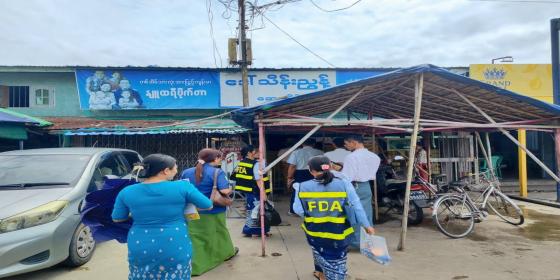 စားသုံးသူရေးရာဦးစီးဌာန၊ ဧရာဝတီတိုင်းဒေသကြီး၊ မအူပင်မြို့မှ စစ်ဆေးရေးအရာရှိနှင့် ဝန်ထမ်းများသည် အစားအသောက်နှင့်ဆေးဝါးကွပ်ကဲရေးဦးစီးဌာန၊ ပြည်သူ့ကျန်းမာရေးဦးစီးဌာန၊ မွေးမြူရေး နှင့်ကုသရေးဦးစီးဌာန၊ တိုင်းရင်းဆေးပညာဦးစီးဌာန၊ စည်ပင်သာယာရေးအဖွဲ့တို့နှင့် အတူ မအူပင်မြို့၊ ကမ်းနားလမ်းရှိ ၉လမ်းစျေး ၂၀၂၆ ခုနှစ်၊ ဖေဖော်ဝါရီလ ၆ ရက်နေ့ ၊ နံနက် ၈ နာရီ အချိန်တွင် စျေးကွက်စောင့်ကြည့်စစ်ဆေးခ