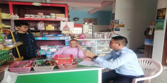 စားသုံးသူရေးရာဦးစီးဌာန၊ မိုးညှင်းခရိုင်ဦးစီးမှူးရုံးမှ စစ်ဆေးရေးမှူး ဦးကျော်မိုးလွင်သည် ၁၀.၇.၂၀၂၅ ရက်နေ့ ၉:၃၀ နာရီအချိန်တွင် မိုးညှင်းမြို့၊ အ.ထ.က(၂) မိုးညှင်း အတွင်းရှိ မဖြူ (ကျောင်းဈေးဆိုင်) သို့ ကုန်အညွှန်းအမှတ်အသားဖော်ပြခြင်းနှင့် ပတ်သက်၍ စားသုံးသူကာကွယ်ရေးဥပဒေပါ ပြဌာန်းချက်များ နှင့် ကိုက်ညီခြင်း ရှိ/မရှိ ဈေးကွက်စောင့်ကြည့်စစ်ဆေးခဲ့ပါသည်။