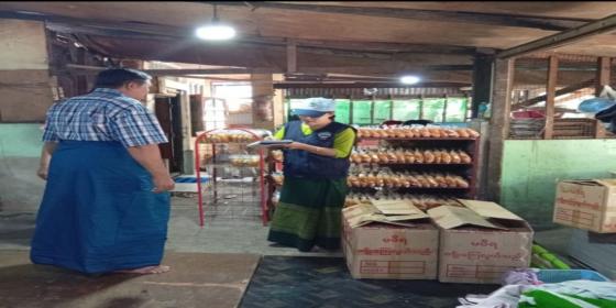 စားသုံးသူရေးရာဦးစီးဌာနမှ ဘိုကလေးမြို့နယ်တာဝန်ခံနှင့် ဝန်ထမ်းတို့သည် ၂၀၂၅ ခုနှစ်၊ ဩဂုတ်လ (၂၂) ရက်နေ့၊ နံနက်(၁၀:၀၀) နာရီအချိန်တွင် (၉) ရပ်ကွက်ရှိ “ရွှေမင်း” ပူတင်းပေါင်မုန့်သို့ ထုတ်ကုန်လုံခြုံစိတ်ချရမှု ရှိစေရေး ကွင်းဆင်းစိစစ်ခဲ့ကြပါသည်။