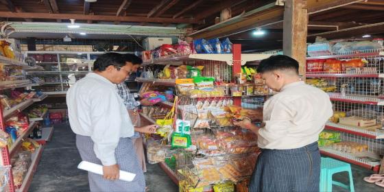 စားသုံးသူရေးရာဦးစီးဌာန၊ မြင်းခြံခရိုင်ဦးစီးမှူးရုံးမှ ဒု-ခရိုင်ဦးစီးမှူး ဦးတင်ဇော်ထွေး ဦးဆောင် ၍ စစ်ဆေးရေးမှူးများသည် စားသုံးသူများ ဘေးအန္တရာယ်ကင်းရှင်းစေရေး၊ ဘေးအန္တရာယ်ကင်းရှင်းပြီး ထိခိုက်နစ်နာ ဆုံးရှုံးမှုများ မဖြစ်ပေါ်စေရေး၊ လုပ်ငန်းရှင်များ စီး