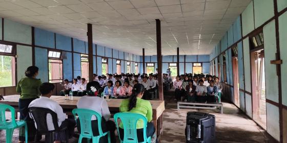 စစ်ကိုင်းတိုင်းဒေသကြီး၊ ရွှေဘိုခရိုင်၊ ရွှေိဘိုမြို့၊ အမှတ်(၄)၊ အခြေခံပညာအထက်တန်း ကျောင်းတွင် ၂၀၂၅ခုနှစ်၊ စက်တင်ဘာလ (၂၅)ရက်နေ့၌ စားသုံးသူရေးရာဦးစီးဌာန၊ ရွှေဘိုခရိုင်ဦး စီးမှူးရုံးမှ ခရိုင်ဦးစီးမှူးဦးဆောင်၍ ဝန်ထမ်း(၄)တို့သည် ဆရာ/ ဆရာမ (၁၅)ဦးနှင့်