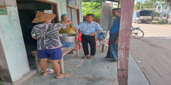 ဧရာဝတီတိုင်းဒေသကြီး၊ မြန်အောင်ခရိုင်၊ ကြံခင်းမြို့နယ် မြန်မာ့စီးပွားရေးဘဏ်၌ (၃၀.၁၀.၂၀၂၅)ရက်နေ့ နံနက်(၈)နာရီအချိန်ကပင်စင်လာရောက်ထုတ်ယူကြသည့် နိုင်ငံဝန်ထမ်း အငြိမ်းစားများအား ဆီနှင့် ကြက်ဥများကို ဈေးနှုန်းချိုသာစွာဖြင့် ရောင်းချပေးလျက်ရှိသည်။