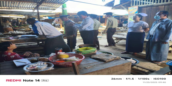 စားသုံးသူရေးရာဦးစီးဌာန၊ အင်္ဂပူမြို့နယ်တာဝန်ခံနှင့်ဝန်ထမ်းများသည် မိတ်ဘက်ဌာနဆိုင်ရာ များနှင့်ပူးပေါင်း၍(၂၄.၁၁.၂၀၂၅)ရက်နေ့ နံနက်(၀၈:၀၀)နာရီအချိန်တွင် အင်္ဂပူမြို့နယ်၊ မြို့မ(မြောက်) အခြေခံပညာမူလတန်းကျောင်းရှိ ကျောင်းမုန့်ဈေးတန်းအား ကျန်းမာရေးအဖွဲ့၊ကျောင်းမုန့်ဈေးတန်း ကော်မတီဝင်များနှင့်အတူ ဈေးကွက်စောင့်ကြည့်စစ်ဆ