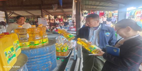 စားသုံးသူရေးရာဦးစီးဌာန၊ မကွေးတိုင်းဒေသကြီး၊ တိုင်းဒေသကြီးဦးစီးမှူး၏ လမ်းညွှန်မှုဖြင့် မင်းဘူးခရိုင်တာဝန်ခံရုံးမှ ဒေါ်ဌေးဌေးဝင်း(ဒု-ဦးစီးမှူး)နှင့် ဝန်ထမ်းများသည် စားသုံးသူများဘေးကင်း လုံခြုံမှုရှိစေရေးနှင့် ထုတ်ကုန်များ လုံခြုံစိတ်ချရမှုရှိစေရေးအတွက် (၅.၁.၂၀၂၆) ရက်နေ့၊ နံနက် (၁၁:၀၀)နာရီအချိန်တွင် မင်းဘူးမြို့၊ မြို့မဈေးအတွင်းရှိ စားသုံ