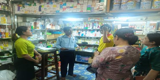 ရန်ကုန်တိုင်းဒေသကြီး၊ တရားမဝင်ကုန်သွယ်မှုတိုက်ဖျက်ရေးအထူးအဖွဲ့၏ လမ်းညွှန်မှု အရ အလုံခရိုင်၊ မရမ်းကုန်းခရိုင်၊ ကျောက်တံတားခရိုင် တရားမဝင်ကုန်သွယ်မှုတိုက်ဖျက်ရေး အထူးအဖွဲ့ အတွင်းရေးမှူး စားသုံးသူရေးရာဦးစီးဌာန၊ အနောက်ပိုင်းခရိုင်ဦးစီးမှူး ဦးအောင်တင်စိုး ဦးဆောင်သော ပူးပေါင