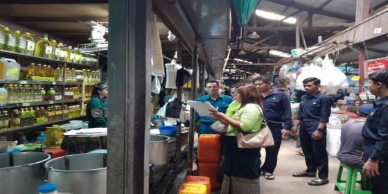 စားသုံးသူရေးရာဦးစီးဌာန၊ ရန်ကုန်အနောက်ပိုင်းခရိုင်ဦးစီးမှူးရုံးမှ စစ်ဆေးရေးအရာရှိ (၂)ဦး နှင့် ဝန်ထမ်း(၂) ဦးတို့သည် စမ်းချောင်းမြို့နယ်၊ ရှမ်းလမ်းဈေးအတွင်းရှိ ဒေါ်အိအိဖြူ (ဆီဆိုင်) နှင့် ဦးထွန်းမြင့်နိုင် (ဆီဆိုင်) တို့အား ဈေးတာဝန်ခံတို့နှင့် ပူးပေါင်းပြီး ဆီရောင်းချမှု