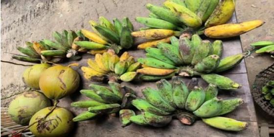 စစ်ကိုင်းတိုင်းဒေသကြီး၊ ကန့်ဘလူခရိုင်၊ ကန့်ဘလူမြို့မဈေးရှိ ငှက်ပျောသီးဆိုင်တွင် ဖီးကြမ်း ငှက်ပျောသီး၊ ခွံစိမ်းငှက်ပျောသီးနှင့် ကက်သဲငှက်ပျောသီးများ ရောင်းချလျက်ရှ