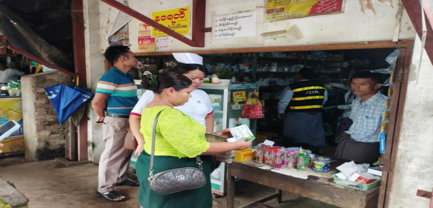 “စားသုံးသူပြည်သူများဘေးအန္တရာယ်ကင်းရှင်းစေရေးနှင့်ထုတ်ကုန်များလုံခြုံစိတ်ချရမှုရှိစေရေးတို့အတွက်ဆေးဆိုင်များအားကွင်းဆင်းစစ်ဆေး”