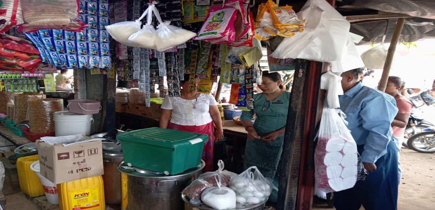 မကွေးမြို့၊ ကန်သာစျေး၌ ဘူးသွတ်ဆီရောင်းချသော ဆီဆိုင်များအားဈေးကွက် စောင့်ကြည့်စစ်ဆေးခြင်း