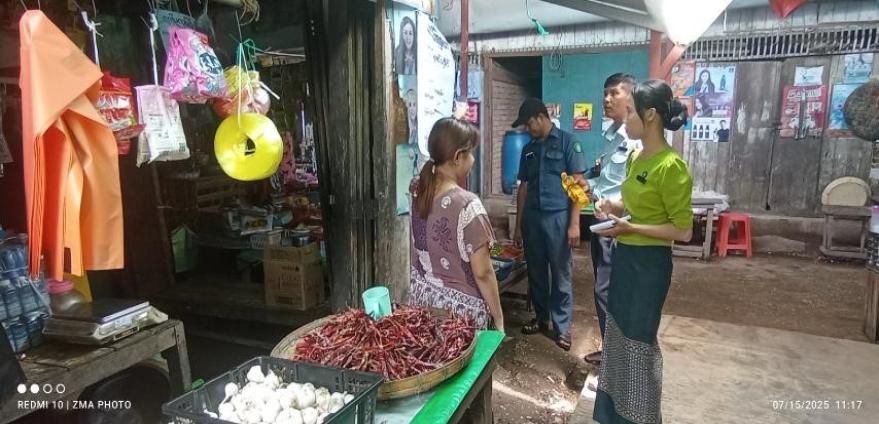 ဧရာဝတီတိုင်းဒေသကြီး၊ စားသုံးသူရေးရာဦးစီးဌာန၊ ပုသိမ်ခရိုင် ငပုတောမြို့နယ် တာဝန်ခံ ဦးဇော်မင်းဦးနှင့်ဝန်ထမ်းများသည် မြို့နယ်စည်ပင်သာယာရေးအဖွဲ့နှင့် ပူးပေါင်း၍ (၁၄.၁၀.၂၀၂၅) ရက်နေ့ နံနက်(၀၉:၃၀) နာရီအချိန်တွင် ငပုတောမြို့နယ် မြို့မဈေးတွင် စားအုန်းဆီရောင်းချနေသော ကေကေဆိုင်နှင့် မိဆုဆိုင်များအား သတ်မှတ်ရည်ညွှန်းဈေးနှုန်းဖြင့် ရောင်းချပေးနေခြင်း ဗွီနိုင်းချိတ်ဆွဲထားခြင်းရှိ/ မရှိ ကွင်းဆင်းစစ်ဆေးခဲ့ကြောင်း သိရသည်။