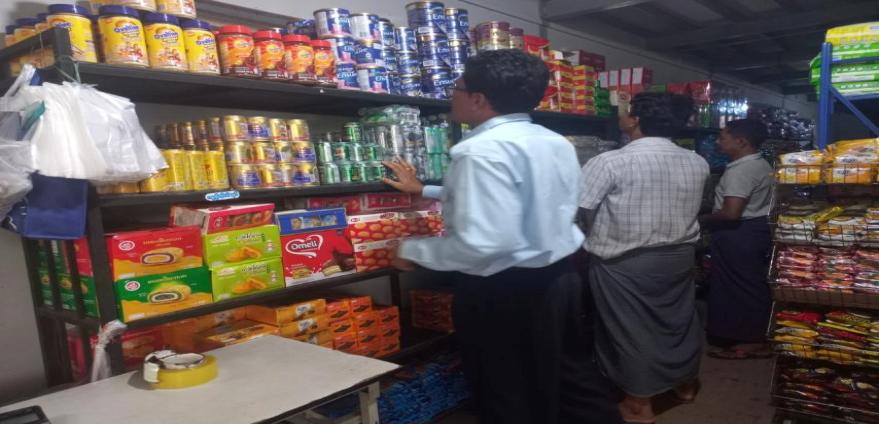 ကျိုက်ထိုမြို့ပေါ်ရှိ စတိုးဆိုင်များတွင် ရောင်းချလျက်ရှိသော အသင့်သောက်အချိုရည် အမျိုးမျိုးအား ဈေးကွက်စောင့်ကြည့်စစ်ဆေး