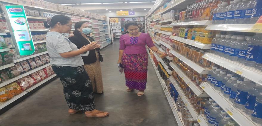 စားသုံးသူရေးရာဦးစီးဌာန၊ မြောက်ပိုင်းခရိုင်ဦးစီးမှူးရုံးမှ ဒေါ်နီလာဝင်း၊ ဦးစီးမှူးပါ (၃)ဦးတို့ သည် (၂၂.၁၀.၂၀၂၅)ရက်နေ့ နံနက်(၁၀:၀၀)နာရီအချိန်တွင် အမှတ်(၁၃)၊ ၁-ခ (၃၉၉-က) အောက်မင်္ဂလာဒုံလမ်းမကြီး၊ အင်းစိန်မြို့နယ်ရှိ City Mart Super Market တွင် ရောင်းချလျက်ရှိသော လူသုံးကုန်၊ စားသောက်ကုန်ဈေးနှုန်းများ၏ အခြေအနေအား ဈေးကွက်စောင့်ကြည့်စစ်ဆေးခြင်းများ ဆောင်ရွက်ခဲ့ပါသည်။