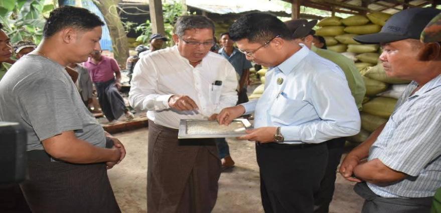 ဦးစွာ တိုင်းဒေသကြီးဝန်ကြီးချုပ်က စပါးအခြောက်ခံစက်လည်ပတ်နေမှုအား ကြည့်ရှုစစ်ဆေးခဲ့ပြီး တစ်နေ့လျင် စပါးအခြောက်ခံစက် လည်ပတ်မှုအခြေအနေများနှင့် စပါးအခြောက်ထွက်ရှိမှုများ၊ မိုးရွာသွန်းမှုကြောင့် စပါးများ အခြောက်ခံရန်အတွက် အခက်အခဲမရှိစေရန် စပါးအခြောက်ခံစက်များဖြင့် စပါးအ၀ယ်ဒိုင်ဖွင့်လှစ် ၀ယ်ယူပေးနေမှုကြောင့် တောင်သူများ သင့်တင့်သည့် စပါးစျေးနှုန်းရရှိမှုများ၊ ဈေးကွက်သို့တင်ပို့မှုနှင့် ဈေးနှုန်းရရှိမှုအခြေအနေများအား မေးမြန်းခဲ့ရာ စပါးအခြောက်ခံစက်တာဝန်ခံက လုပ်ငန်းဆောင်ရွက်မှုအခြေအနေများကို ရှင်းလင်းတင်ပြခဲ့သည်။ အဆိုပါ စပါးအခြောက်ခံစက်သည် တစ်နေ့လျှင်(၁၆)နာရီလည်ပတ်ကြောင်းသိရပြီး စပါးအခြောက် (၂၆၀၀)တင်း ထွက်ရှိကြောင်း သိရှိရပါသည်။