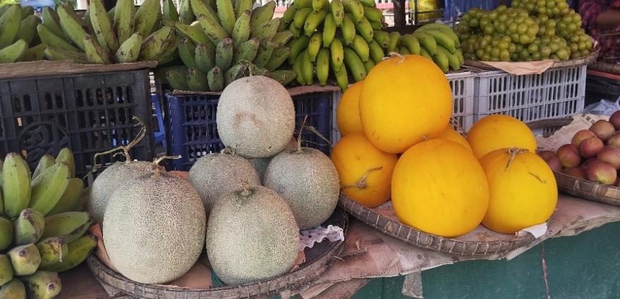 ကျွန်းလှမြို့တွင် ရောင်းချနေသော ရွှေသခွားမွှေးသီး၊ ကျောက်သခွားမွှေးသီး နှင့် စပျစ်သီး ဈေးနှုန်း