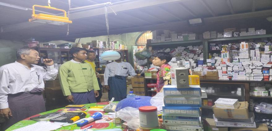စစ်ဆေးဆောင်ရွက်ရာတွင် ကမ်းနာလမ်းရှိ ရိုဇီ ဆေးဆိုင်၊ မြမြဆေးဆိုင်၊ ကျားဗိုလ်ဆေးဆိုင် အား သက်ဆိုင်ရာဌာန ထောက်ခံချက် ပါဝင်သောဆေးဝါးများနှင့် စားသုံးသူကာကွယ်ရေးဥပဒေပါ ကုန်အညွှန်းအမှတ် အသားဖော်ပြခြင်း များနှင့်ကိုက်ညီသော ဆေးဝါး များသာရောင်းချစေရေး သတ်မှတ်ချက်နှင့်ကိုက်ညီသော ဆေးဝါးများရောင်းချရာတွင် လက်ကားဈေး အပေါ်တွင် ဒေသပေါက်ဈေးထက် ဈေးနှုန်းပိုမိုသော အမြတ်တင်ရောင်းချမှုများမဖြစ်ပေါ်စေရေး၊ ဆေးဝါးလက်ကျန်အခြေအနေနှင့် ဆေးဝါးများပြတ်လပ်မှုမဖြစ်ပေါ်စေရေးနှင့်သက်တမ်းလွန်ဆေးဝါးများကို သက်တမ်းအတုများ ဖော်ပြ၍ လိမ်လည်လှည်းဖြား ရောင်းချခြင်းမပြုရနန် ကွင်းဆင်းစိစစ်မှုများ ဆောင်ရွက်ခဲ့ပြီး ဆက်လက်၍လည်း အပတ်စဉ်တိုင်း ကွင်းဆင်းစိစစ်မှုများဆောင်ရွက်သွားမည်ဖြစ်ကြောင်း သိရသည်။