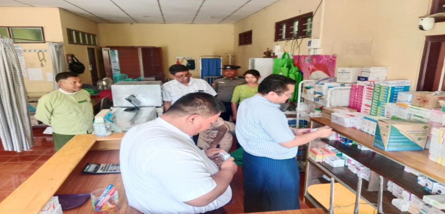 ထိုသို့ ကွင်းဆင်းစစ်ဆေးရာတွင် အစားအသောက်နှင့်ဆေးဝါးကွပ်ကဲရေးဦးစီးဌာနမှ ဒုတိယညွှန်ကြားရေးမှူး ဒေါက်တာညီညီဝင်းနှင့် ဝန်ထမ်းများ ဦးဆောင်၍ မြို့နယ်ပြည်သူ့ကျန်းမာရေးဦးစီးဌာန၊ မြို့နယ်အထွေထွေအုပ်ချုပ်ရေးဦးစီးဌာန၊ မြို့နယ်ရဲတပ်ဖွဲ့၊ မြို့နယ်စားသုံး သူရေးရာဦးစီးဌာနတို့ ပူးပေါင်း၍ အနော်ရထာလမ်း၊ အမှတ်(၁)ရပ်ကွက်တွင် ဖွင့်လှစ်ထားသော အေးမေတ္တာ အထူးကုဆေးခန်း၏ ဆေးဆိုင်သို့ ဆေးဝါးများစနစ်တကျရောင်းချမှုရှိ/မရှိ၊ ထိန်းချုပ် ဆေးဝါးများ ရောင်းချမှုရှိ/မရှိ၊ ဆေးဆိုင်လိုင်စင်ရှိ/မရှိနှင့် ထိန်းချုပ်ဆေးဝါးများအား သတ်မှတ်ချက်နှင့်အညီ လုံခြုံစွာထားသိုရောင်းချနိုင်ရန် စီစဉ်ထားရှိနိုင်ရေးနှင့် လိုအပ်သည်များမှာကြား ဆောင်ရွက်ခဲ့ကြောင်း သိရှိရပါသည်။